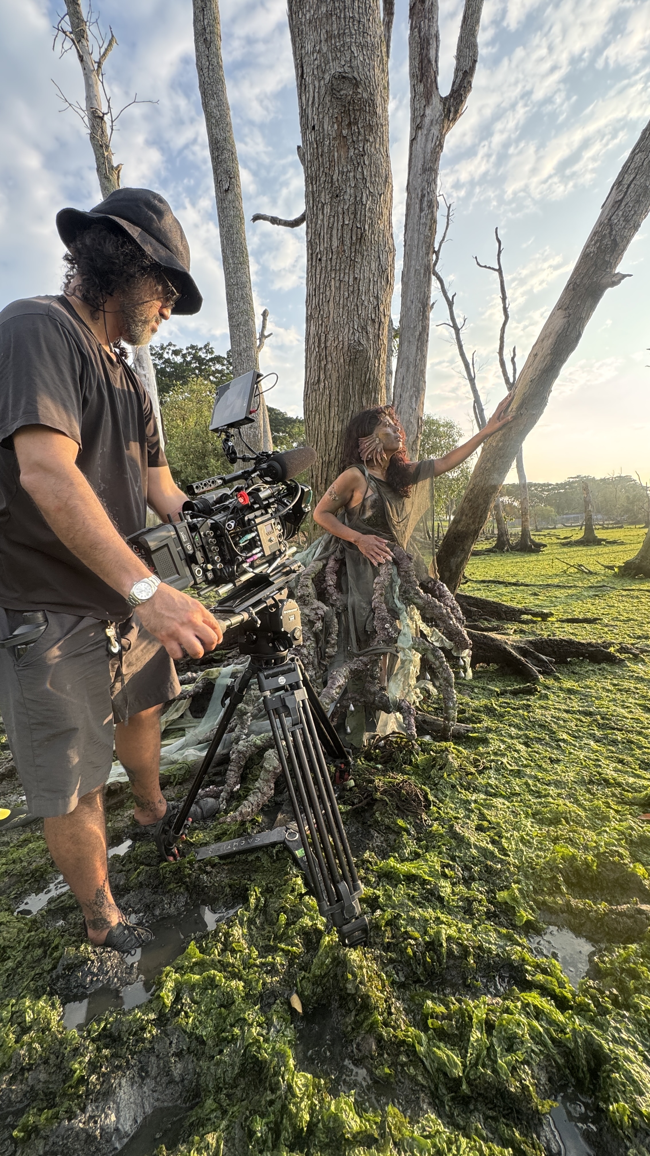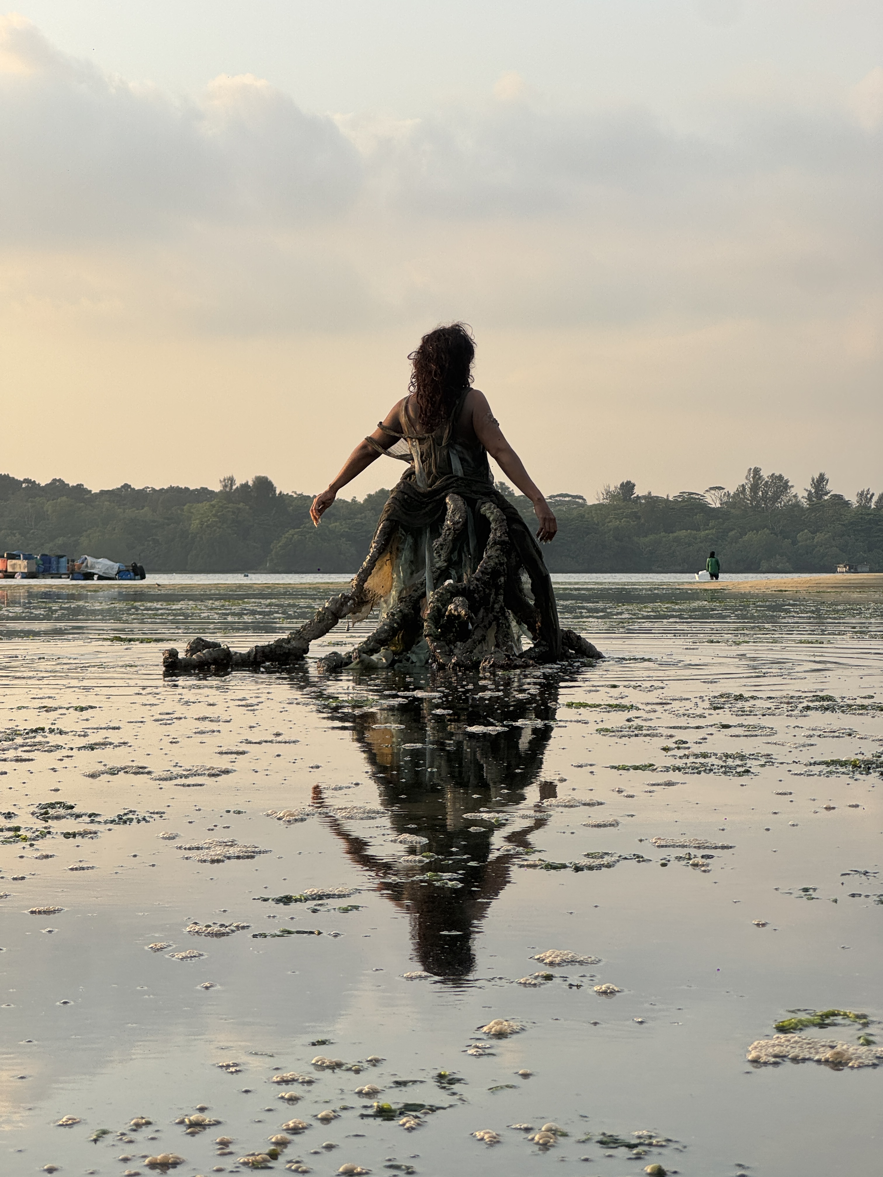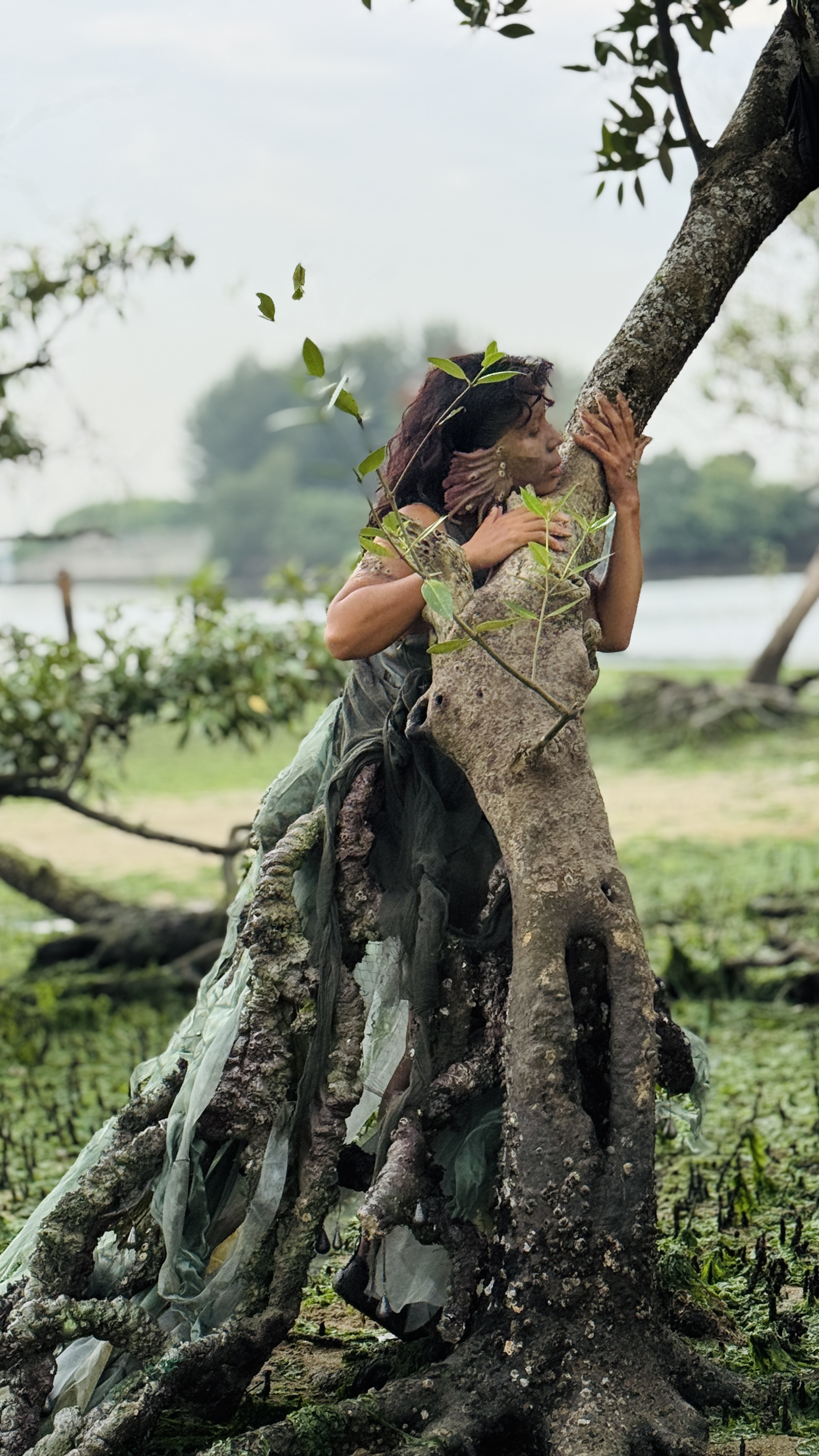 For this project, we designed and fabricated the character’s prosthetics, wearable elements, and special effects makeup. The work involved sculpting, mould-making, silicone casting, and constructing a hybrid costume composed of root-like structures, fishing nets, and organic textures, embodying a mangrove spirit rooted in the ecology and histories of Singapore’s coastal landscapes.
